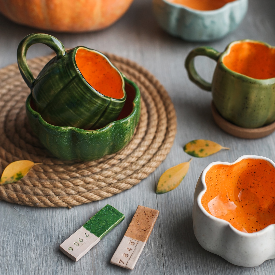 Осталось выбрать цвета глазурей и подождать, пока изделие высохнет и пройдет обжиг! Поверьте - вам не захочется выпускать такую тыковку из ладоней, с ней каждый миг становится намного теплее.